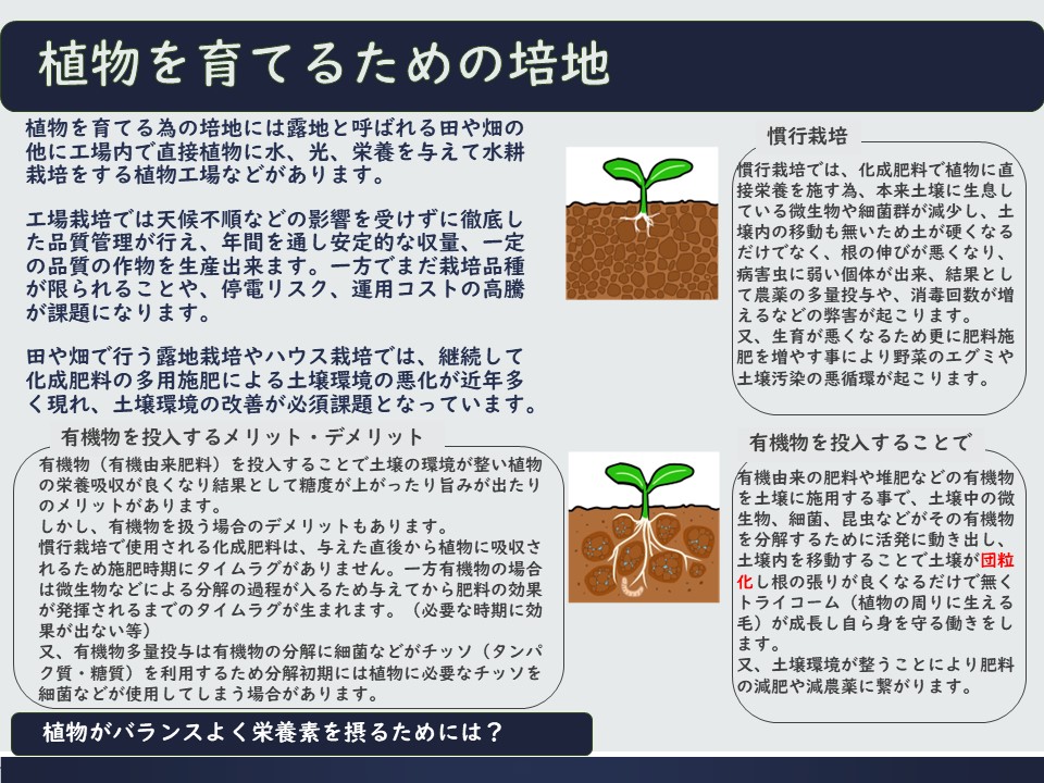 弊社の作物・土壌への考え方と有機肥料へのこだわり https://docs.google.com/presentation/d/1-hqU6Wwu42BqdQhIV_yelvMkdeu38XXA/edit?usp=drive_link&ouid=117983943601072648440&rtpof=true&sd=true